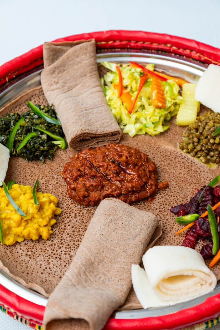 cabbage, carrot, and potato sauteed with jalapeño, onion, garlic, and Ethiopian spices served on injefa.