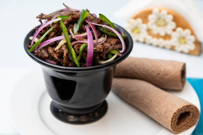 Tender beef, jalapeno and Ethiopian spices, oil, onion, garlic and ginger served with Injera.